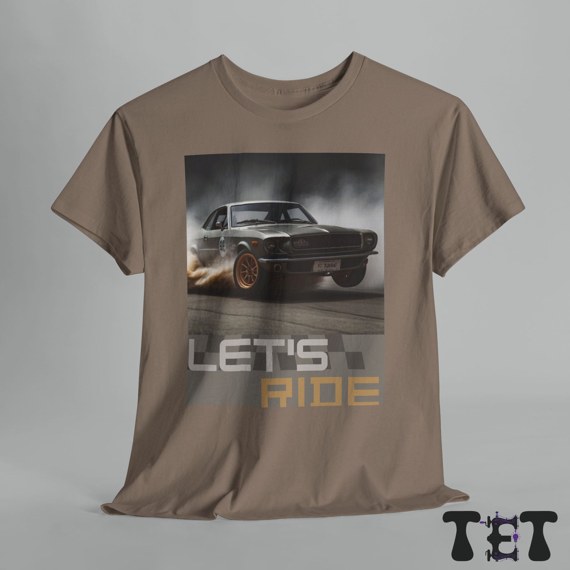 Rev up your style with our Dodge Drift Street Racer Tee. This bold black T-shirt features a classic muscle car performing an epic drift—complete with dynamic smoke effects, the iconic number '96', and a standout license plate '17 7006'. The commanding 'LET'S RIDE' script in white and gold perfectly captures the thrill of street racing, making it a must-have for Dodge lovers and car enthusiasts alike.