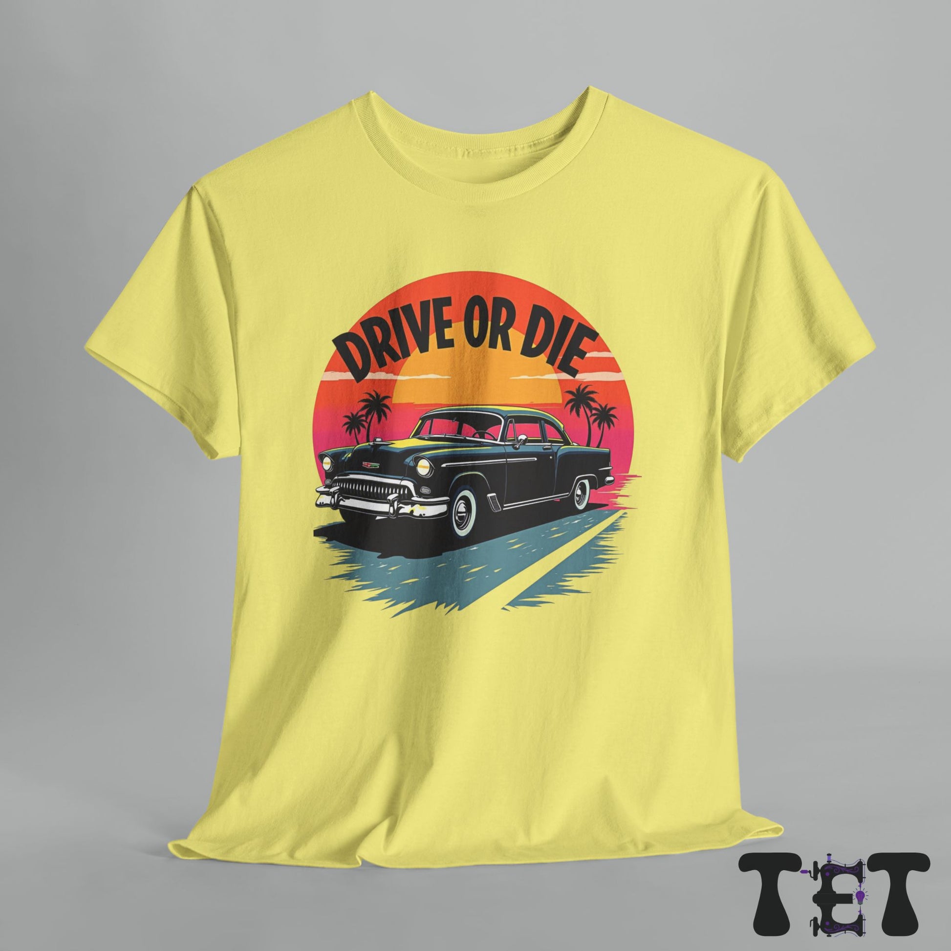 Drive or Die Unisex Heavy Cotton Tee - Retro Car Graphic Tee for Road Trip Lovers